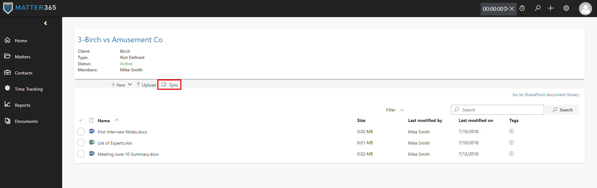 To sync your Matter documents with your desktop, you need to open a Matter documents page and click the